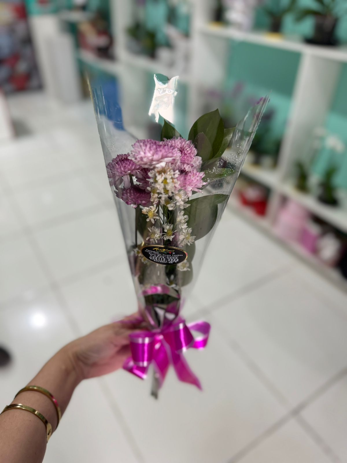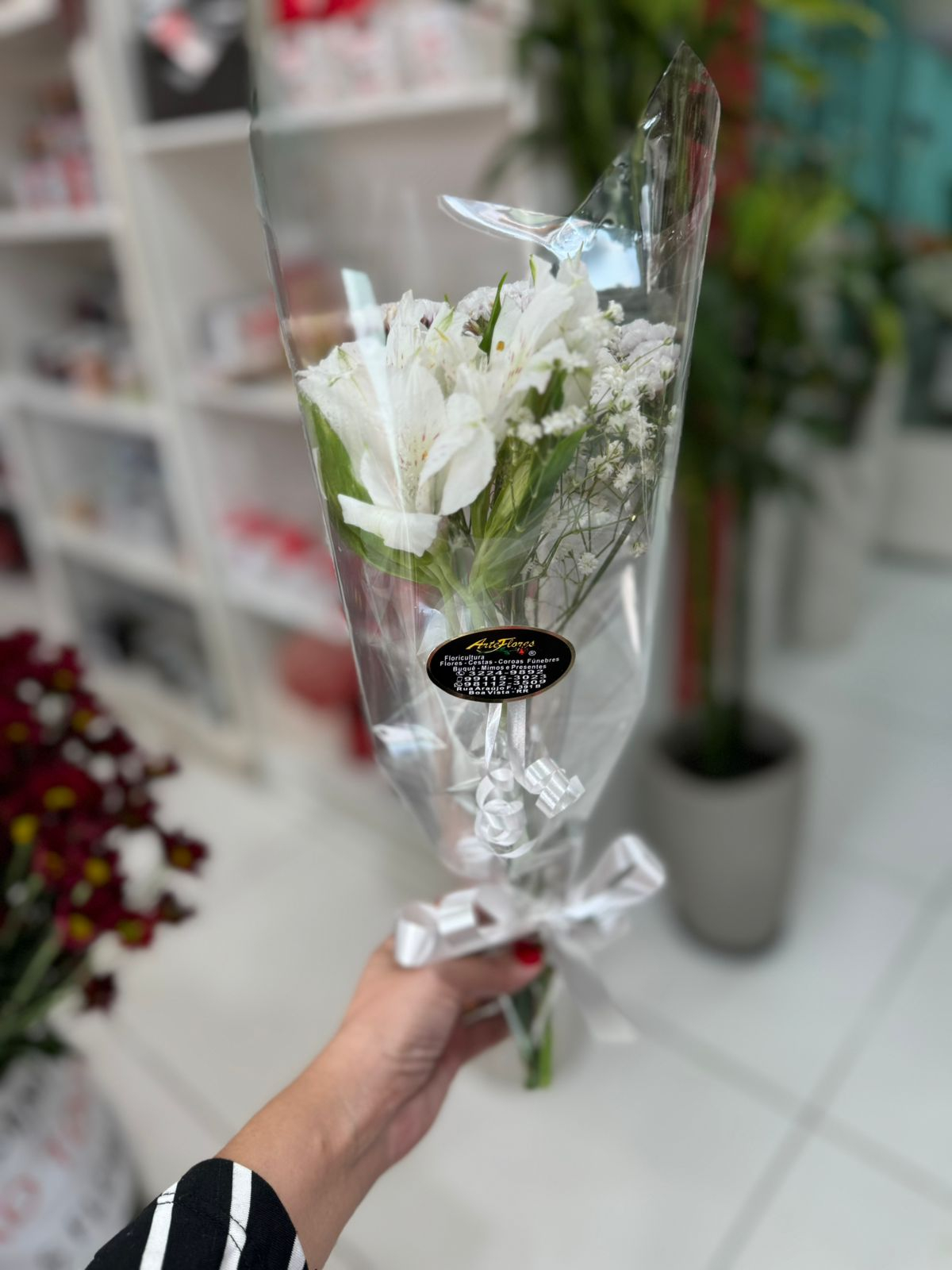 A folhagem e a embalagem é a escolha do florista, sendo a disponível do dia.